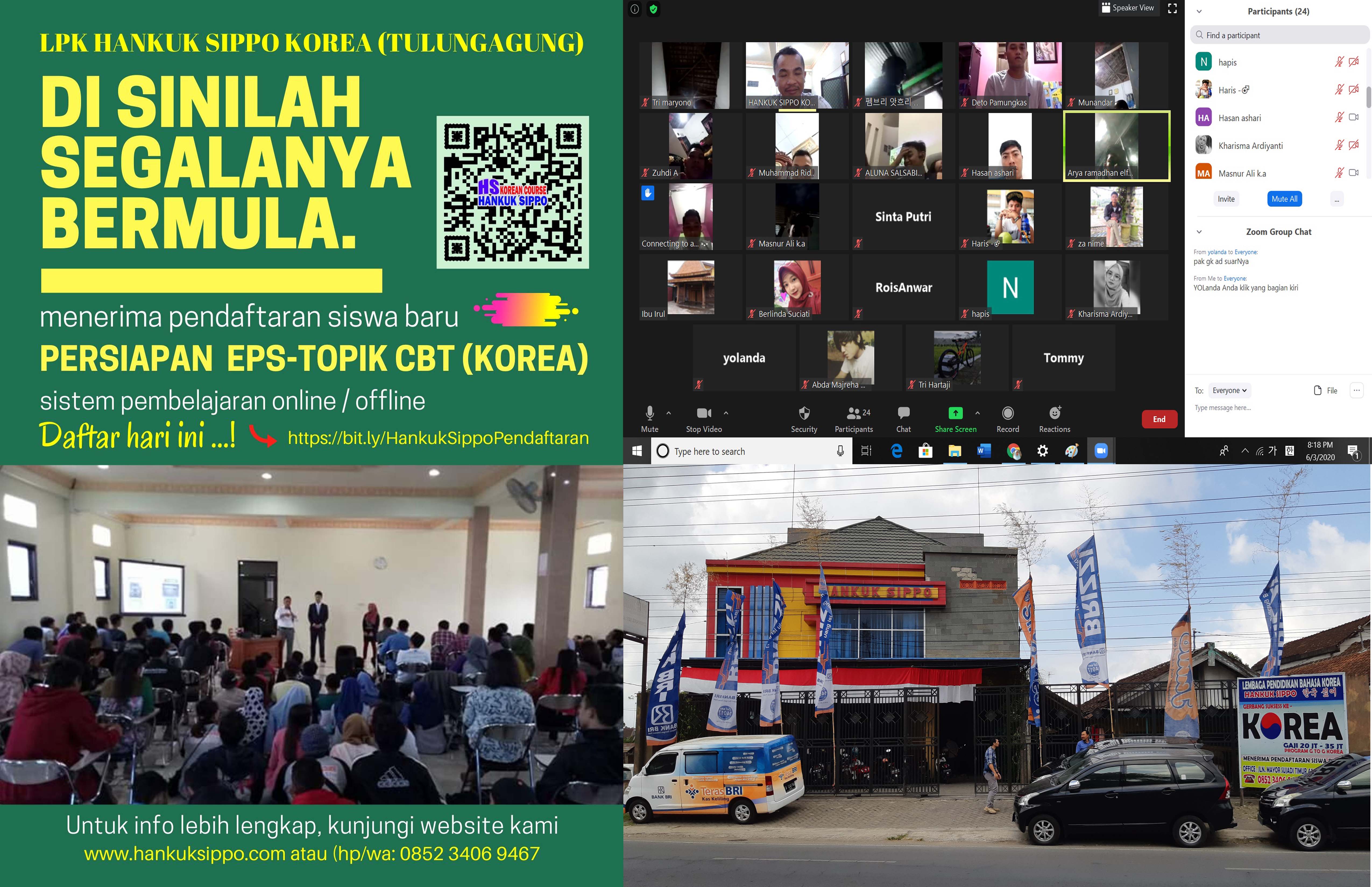Kami LPK HANKUK SIPPO KOREA (TULUNGAGUNG) membuka Pendaftaran Siswa Baru Tahun ajaran thn 2020/2021 untuk program khusus Bahasa Korea persiapan ujian EPS-TOPIK CBT untuk Calon Pekerja Migran Indonesia (CPMI) dengan sistem Pembelajaran OFFLINE (TATAP MUKA) dan ONLINE . Lulus Tes Bahasa Korea merupakan syarat mutlak CPMI untuk bisa melamar pekerjaan ke negara KOREA SELATAN. Untuk itu kami hadir di tengah Masyarakat untuk membimbing dan mengajar dengan sepenuh hati dengan harapan agar semua anak didik kami mampu berbahasa korea dengan baik dan selanjutnya mampu dan LULUS UJIAN BAHASA KOREA dengan hasil yang memuaskan. Karena persaingan dan sekian banyaknya peminat dan peserta Ujian setiap tahunnya, Kata LULUS merupakan hal yang selalu di harapkan. Hanya dengan persiapan belajar lebih awal dan cukup waktu merupakan hal terbaik dilakukan.